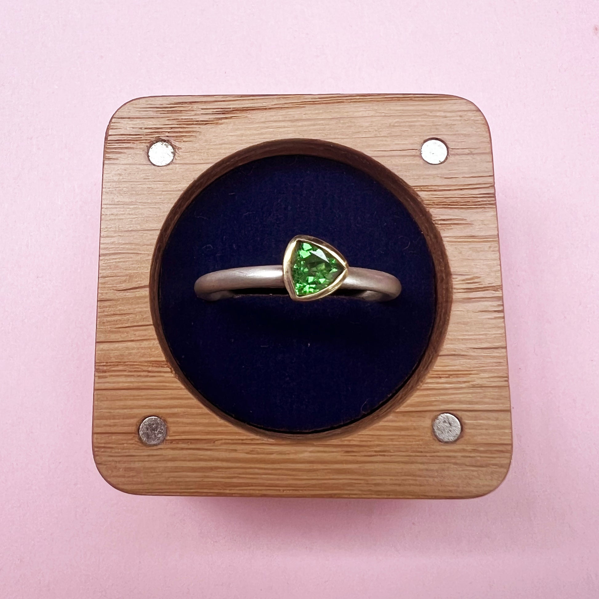 Crafted with sustainability in mind, our 18ct Set Tsavorite Garnet Ring features a recycled gold band and silver shank. Perfect for stacking with other rings, the vibrant Tsavorite garnet stone adds a touch of natural beauty to any outfit. Expertly designed for the conscious consumer.