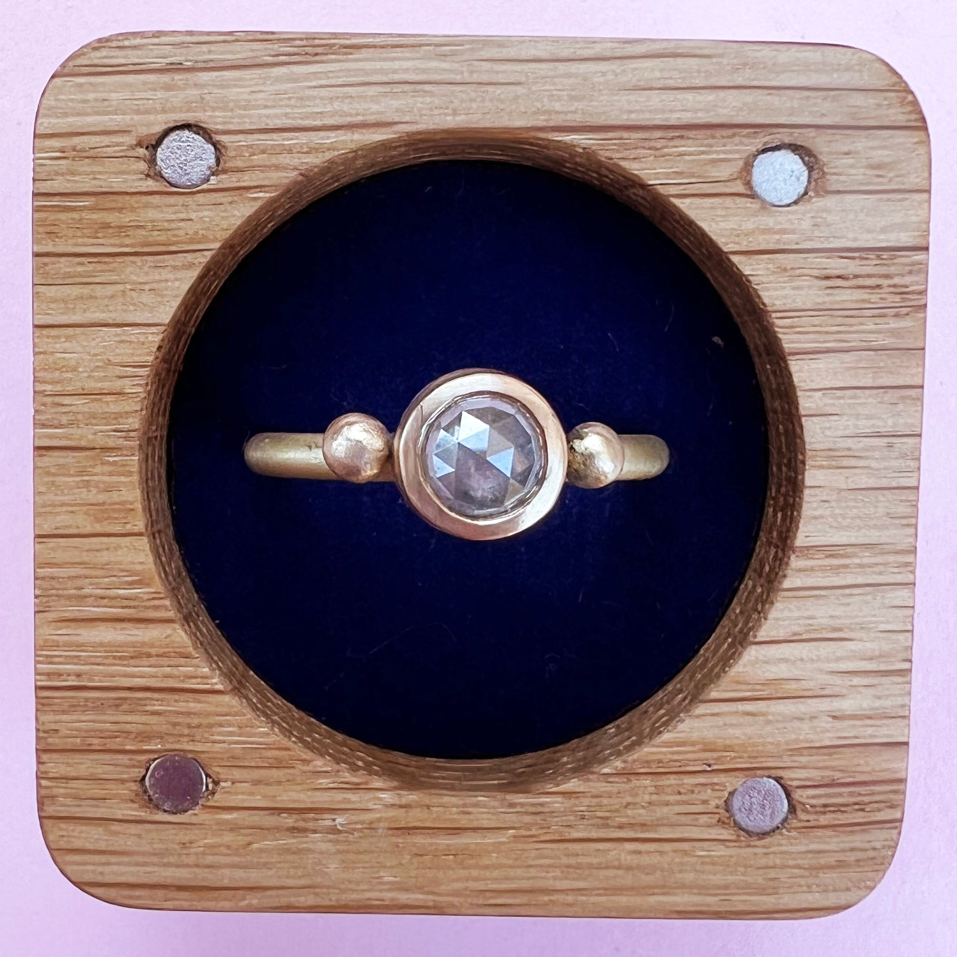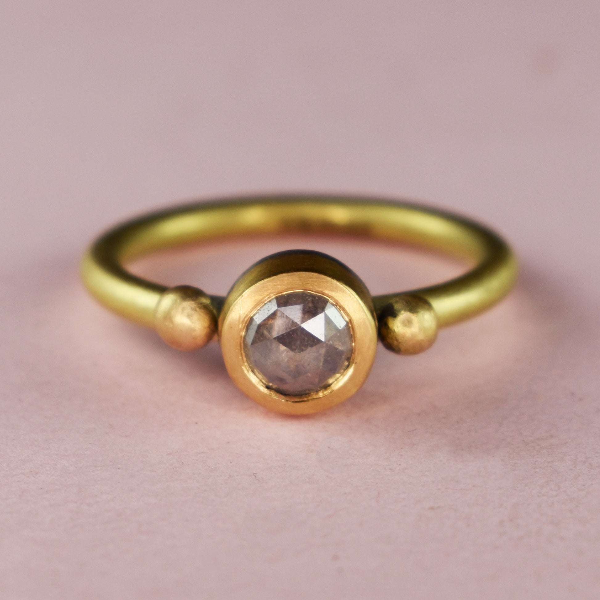 22ct & 18ct yellow gold and rose cut grey diamond, bezel set with a satin finish.