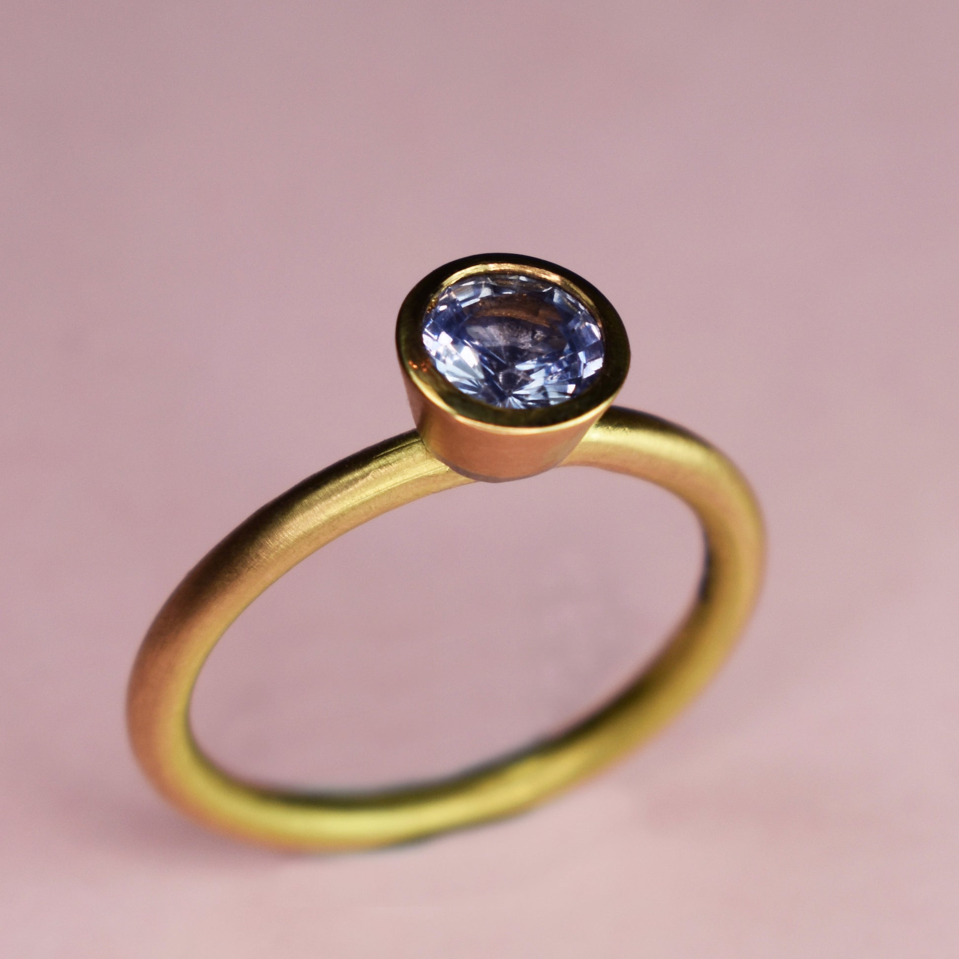 22ct & 18ct yellow gold and brilliant cut 0.78ct Sri Lanken Sapphire, bezel set with a satin finish.