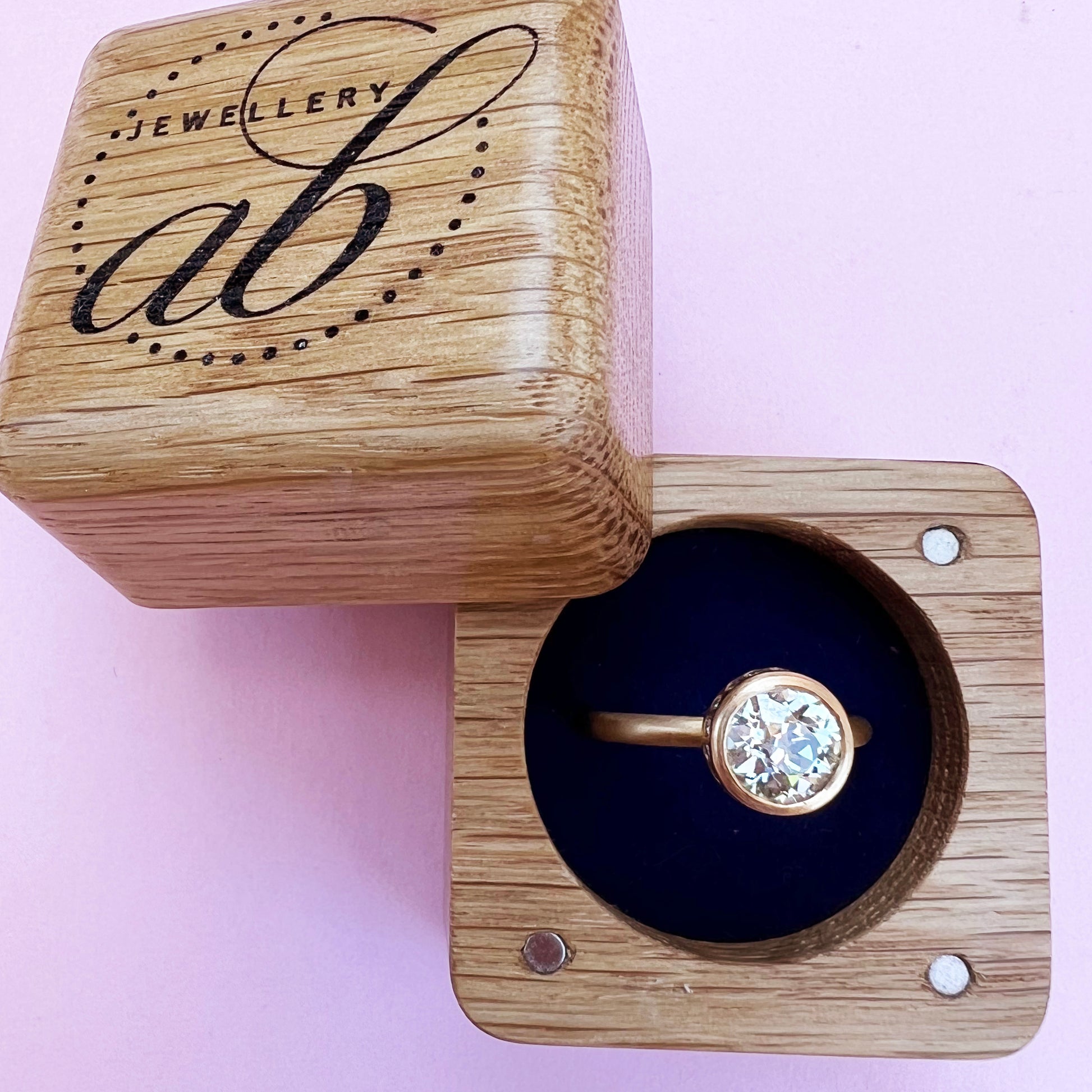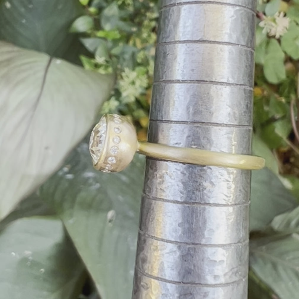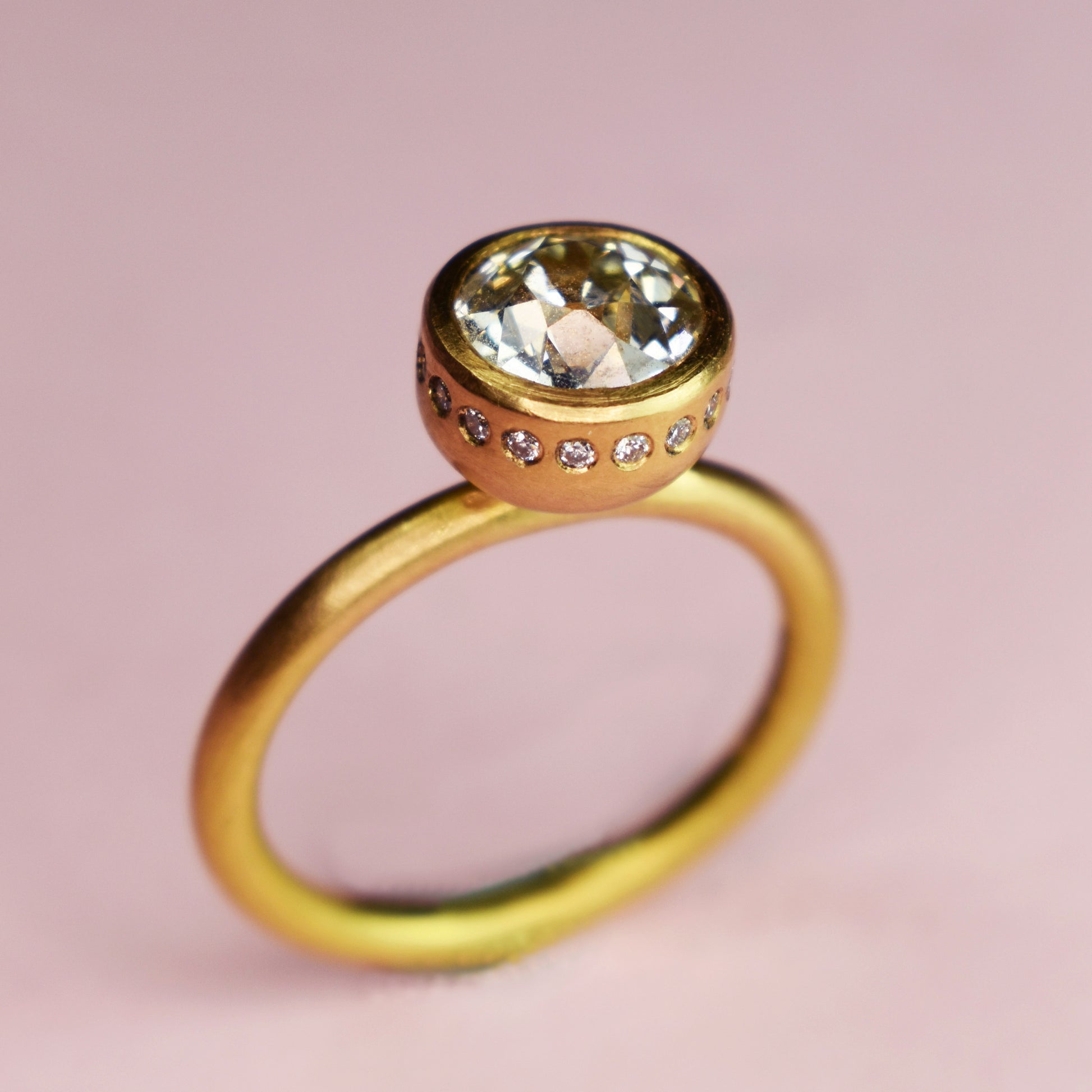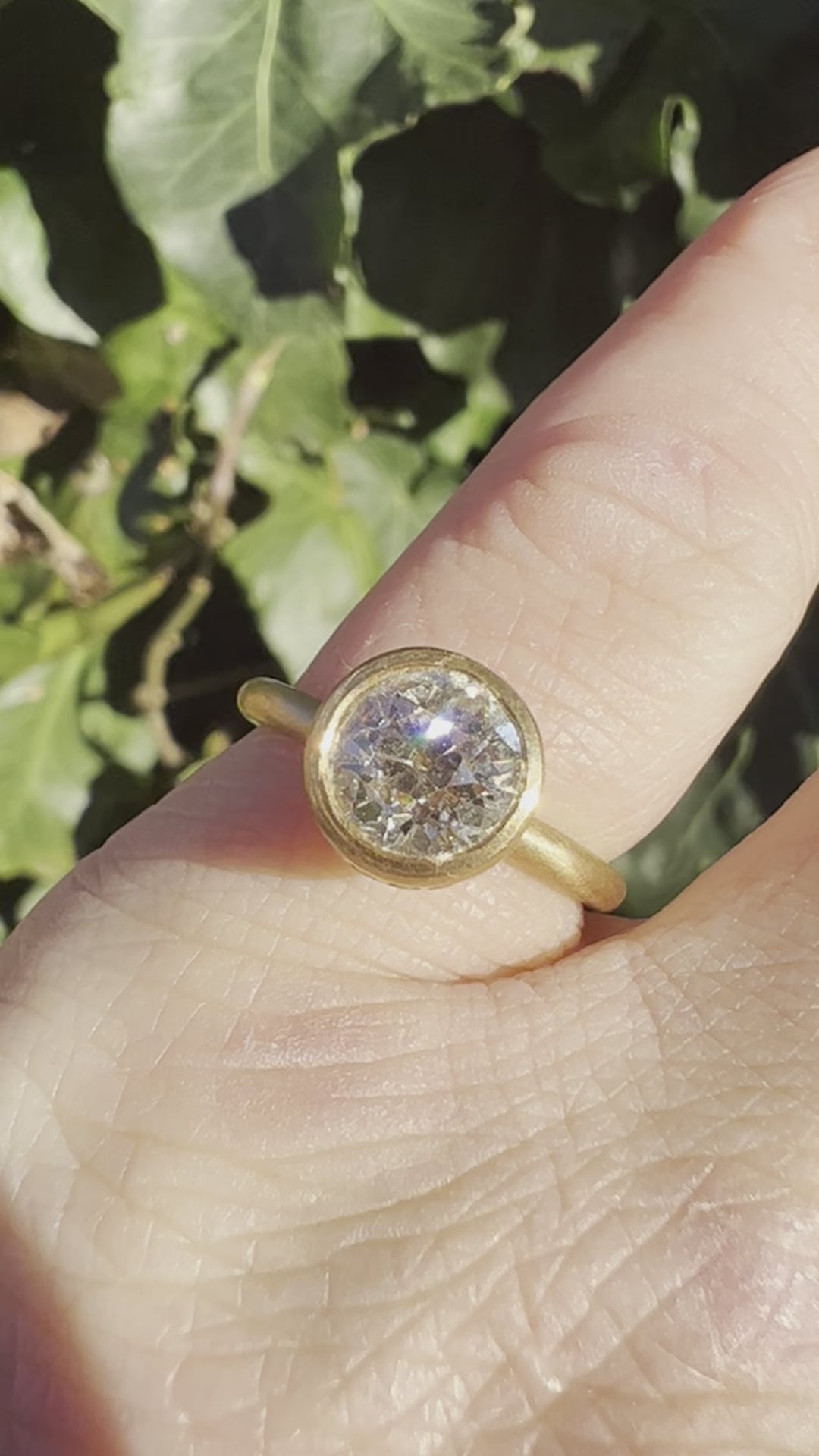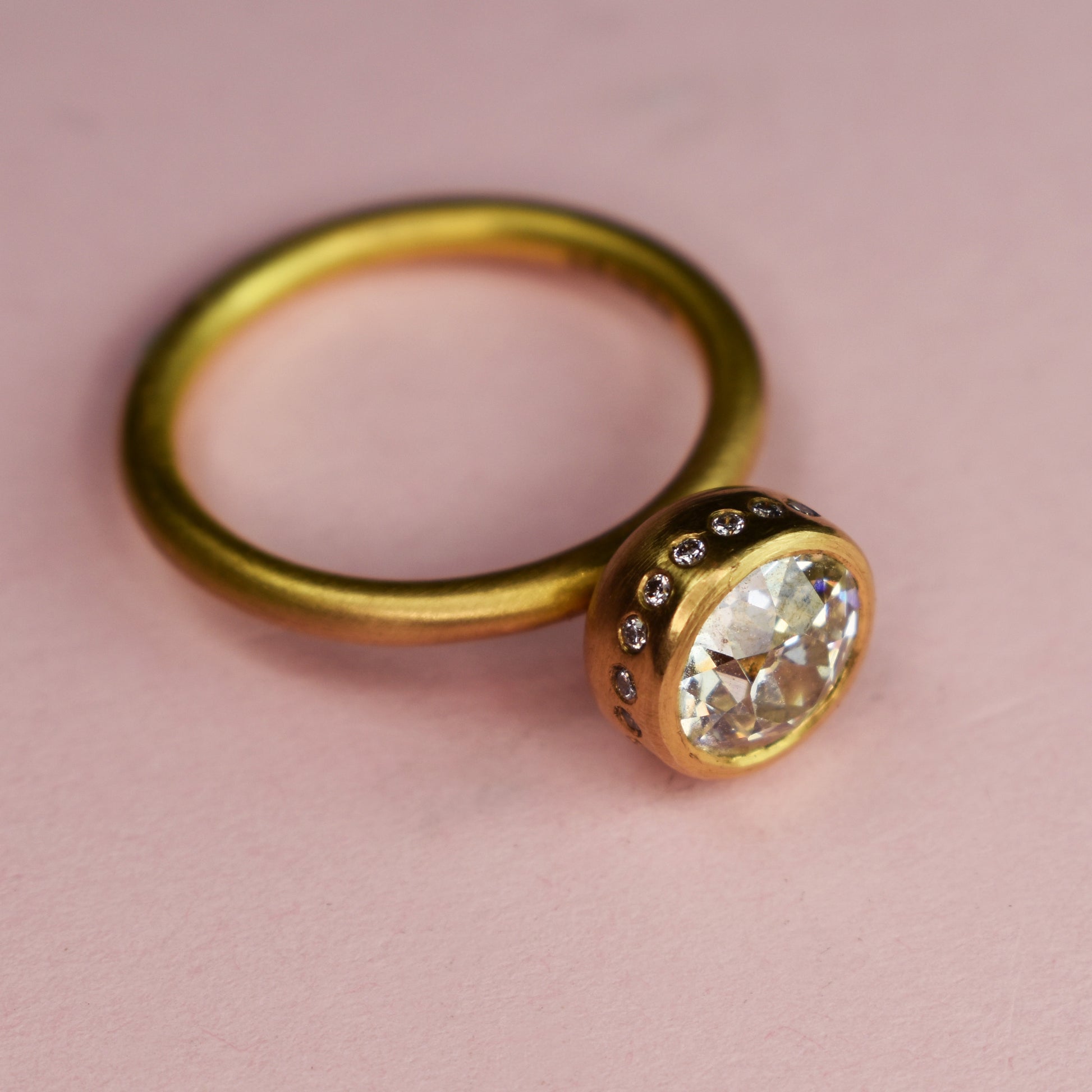 22ct yellow gold and brilliant cut gorgeous Old Cut Diamond, bezel set with a satin finish.