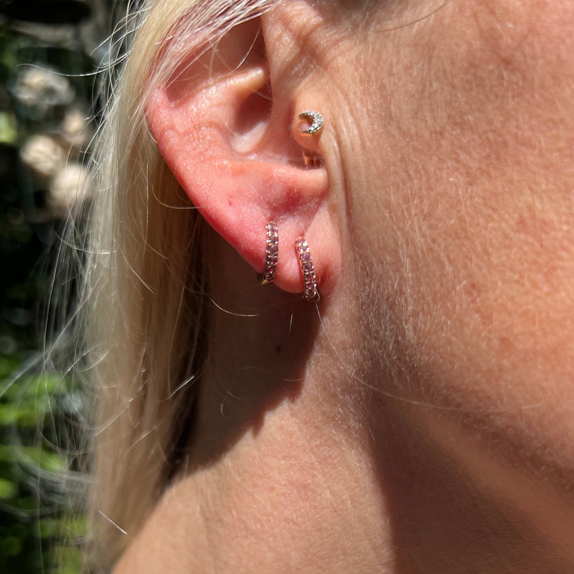 Pink Sapphire & 9ct Rose Gold Huggie Hoop