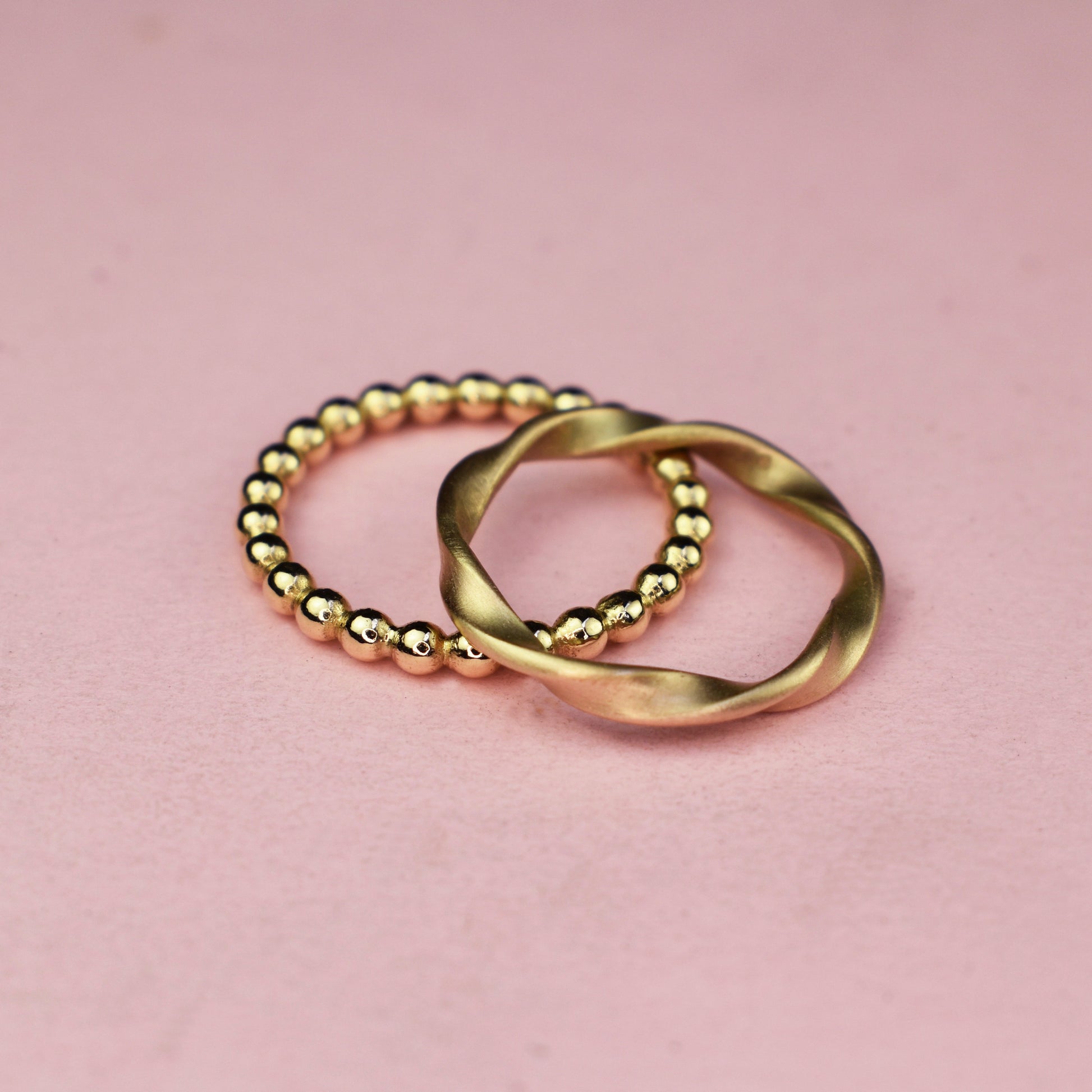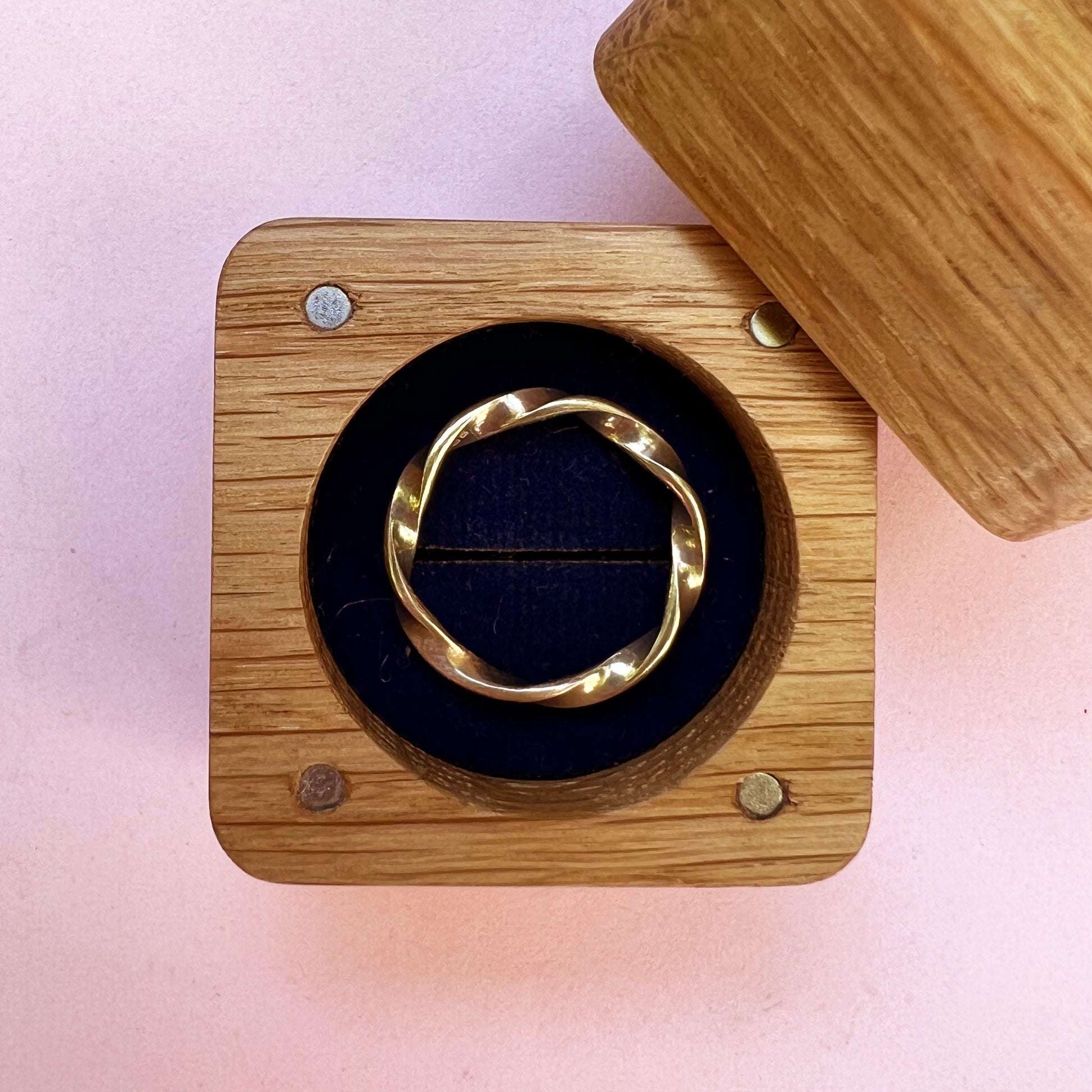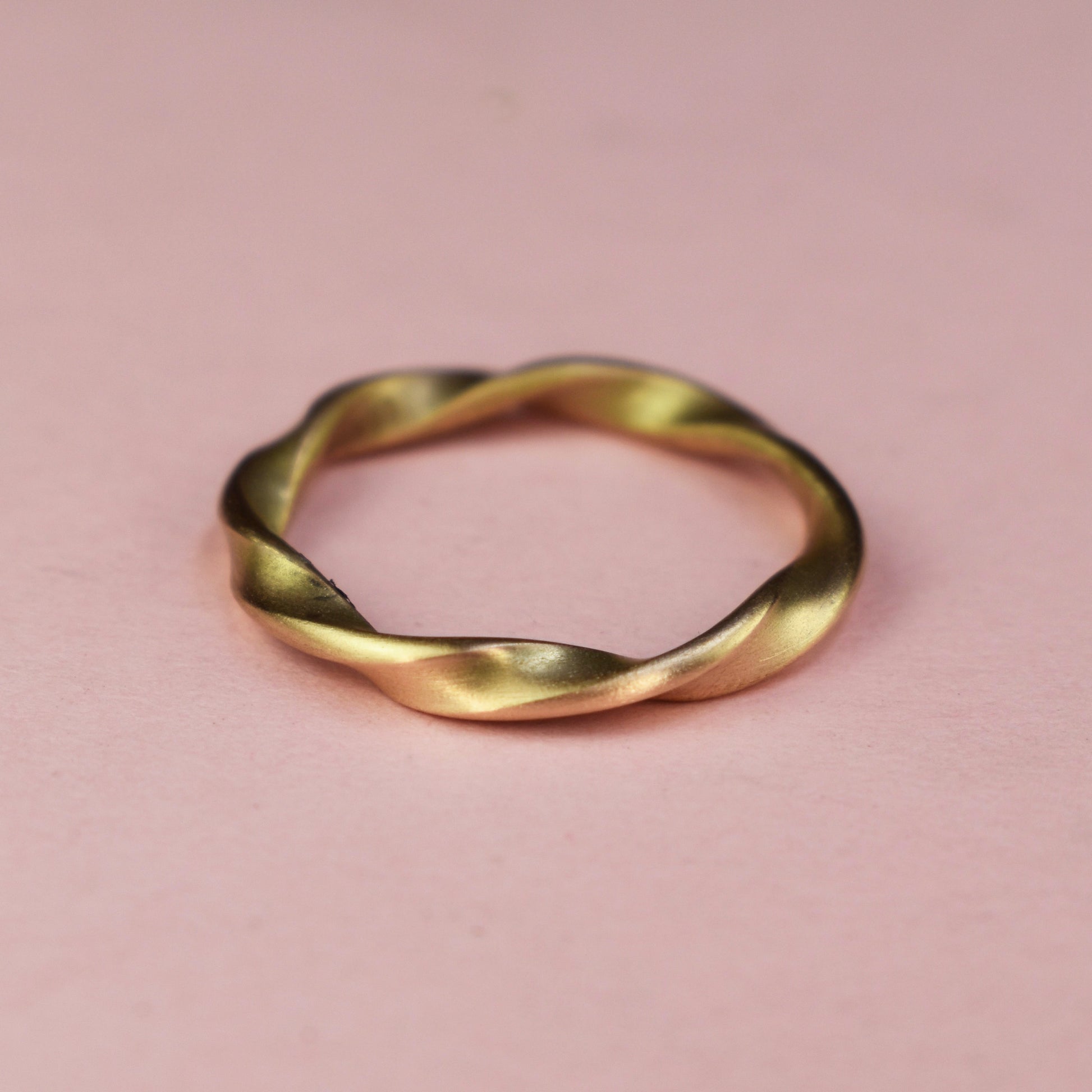 Made to Order - This Roman Twist Ring is handcrafted using traditional techniques and features recycled 9ct gold. Its sleek design allows for easy stacking and adds a touch of elegance to any outfit. Made with expert craftsmanship, this ring is not only stylish but also sustainable.